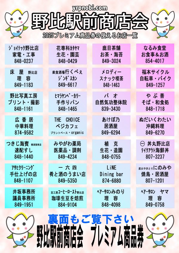 京急YRP野比駅周辺にある「がんばります!」と「やさしいおもてなし」がキャッチフレーズ商店街。季節ごとの売り出しや、地域各種イベントを共催・後援しています。